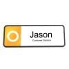 Plastic name badge – available in black or white. Comes with a pin or magnet on the back. Please select from the options below.