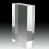 Solid clear acrylic block, self standing, for both landscape and portrait engraving.