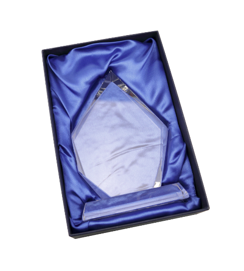 The Andes Crystal Awards comes in a blue satin lined gift box.