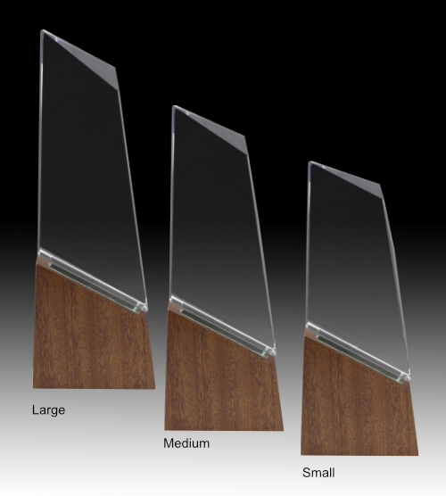 Featuring a sleek glass panel rising from a rich wooden base, this award combines modern elegance with timeless prestige. Inspired by the world’s highest peak, the Everest Crystal Award is a symbol of success.