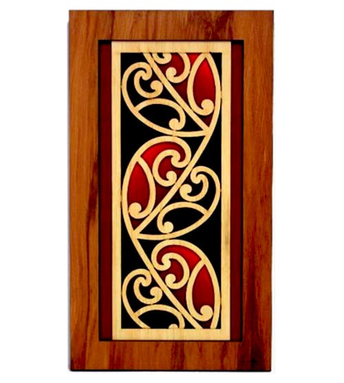Contemporary Maori design Heart panel crafted from Rimu veneer board.