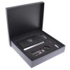 Black/Silver Card Holder, Key Ring, and Pen Gift Set.