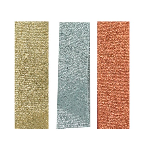 Metallic Ribbons: With V-neck and jump ring, made from metallic coloured thread. Available in 3 colours; Gold, Silver & Bronze.