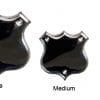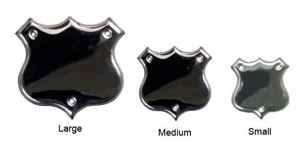 Stainless steel, silver shield accessory.