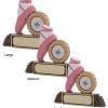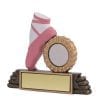 Pink ballets shoes and gold rosette, molded from resin as one unit.