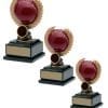 Cricket ball set within a gold wreath on a black square base, molded from resin as one unit.
