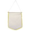 Perfect for showcasing logos, emblems, or messages. It has a light yellow fringe border and a sturdy hanging rod, ideal for ceremonial events, team spirit displays, or corporate branding.
