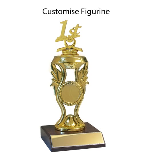 Price includes engraving done on an aluminium plate fixed to a small wooden base of your choice, a standard figurine of choice and a standard image to place in the blank circle, select from options below.