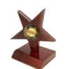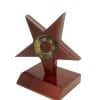 MDF wood star shaped trophy with high gloss, dark walnut finish.