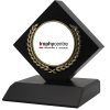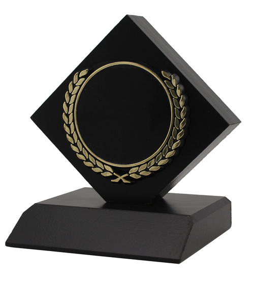 Thick diamond shaped wooden trophy with a matte black finish