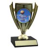 Gold plastic holder in the shape of a trophy cup with a 50mm dia. circle.
