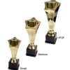 Gold Star molded plastic pedestal on a black weighted plastic base, with a standard figurine of choice.