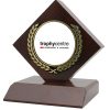 Thick diamond shaped wooden trophy with a gloss cherry finish
