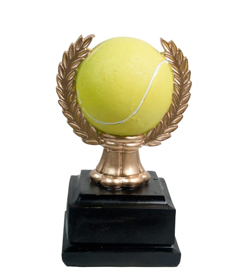 Tennis Ball & Wreath on black base, molded from resin as one unit.